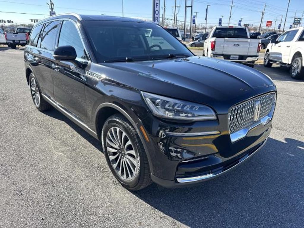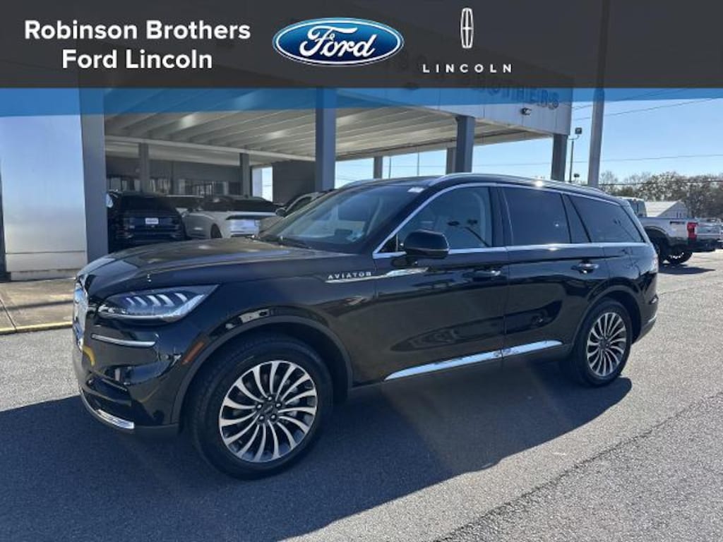Infinite Black Metallic Clearcoat 2023 Lincoln Aviator Reserve AWD 10-Speed Automatic 3.0L V6<br><br>Recent Arrival!<br><br><br>Robinson Brothers Ford Lincoln specializes in one owner lease returns and trade in vehicles - not cars from rental companies! We believe it is a much better value for your money to purchase a one owner lease return or a customer trade-in as opposed to rental units that have not been taken care of! We offer a complimentary vehicle history report on all of our vehicles! Buy with confidence! Elements Package Plus (Auto Air Refresh Auto Heated/Ventilated Driver & Passenger Seats Heated Steering Wheel Heated VisioBlade Wipers and Heated/Ventilated 2nd Row Outboard Seats) Equipment Group 200A 14 Speakers 2nd Row Bench Seat 3.58 Axle Ratio 3rd row seats: split-bench 4-Wheel Disc Brakes ABS brakes Adaptive suspension Air Conditioning All-Weather 1st & 2nd Row Floor Liners (16A) Alloy wheels AM/FM radio: SiriusXM Audio memory Auto High-beam Headlights Auto-dimming door mirrors Auto-dimming Rear-View mirror Automatic temperature control Brake assist Bumpers: body-color Compass Delay-off headlights Driver door bin Driver vanity mirror Dual front impact airbags Dual front side impact airbags Electronic Stability Control Emergency communication system Four wheel independent suspension Front anti-roll bar Front Bucket Seats Front Center Armrest Front dual zone A/C Front reading lights Fully automatic headlights Garage door transmitter Hands-Free Liftgate Delete Heated door mirrors Heated front seats HVAC memory Illuminated entry Knee airbag Leather steering wheel Low tire pressure warning Memory seat Navigation System Occupant sensing airbag Outside temperature display Overhead airbag Overhead console Panic alarm Passenger door bin Passenger vanity mirror Power door mirrors Power driver seat Power Liftgate Power moonroof: Panoramic Vista Roof Power passenger seat Power steering Power windows Premium Lthr Heated/Ventilated Fnt Captain's Chairs Radio data system Radio: Revel AM/FM Audio System w/14 Speakers Rain sensing wipers Rear air conditioning Rear anti-roll bar Rear audio controls Rear dual zone A/C Rear reading lights Rear window defroster Rear window wiper Remote keyless entry Security system SiriusXM Radio Speed control Speed-Sensitive Wipers Split folding rear seat Spoiler Steering wheel memory Steering wheel mounted A/C controls Steering wheel mounted audio controls SYNC 3 Communication & Entertainment System Tachometer Telescoping steering wheel Tilt steering wheel Traction control Trip computer Turn signal indicator mirrors Variably intermittent wipers and Wheels: 20' Bright-Machined Aluminum.