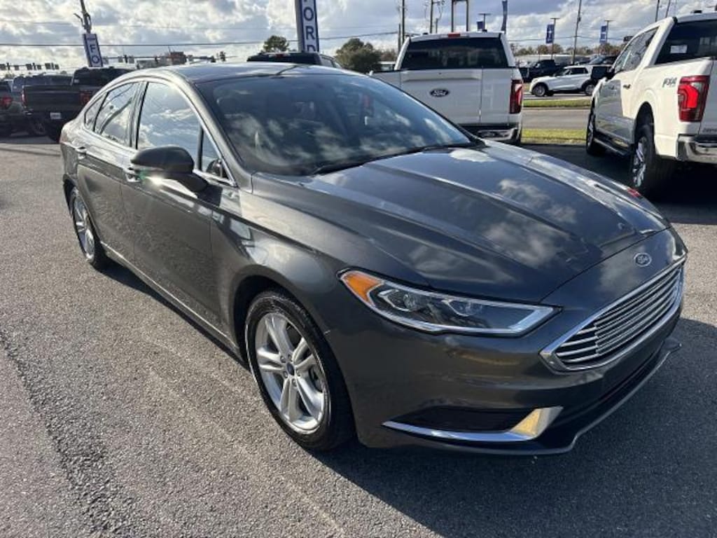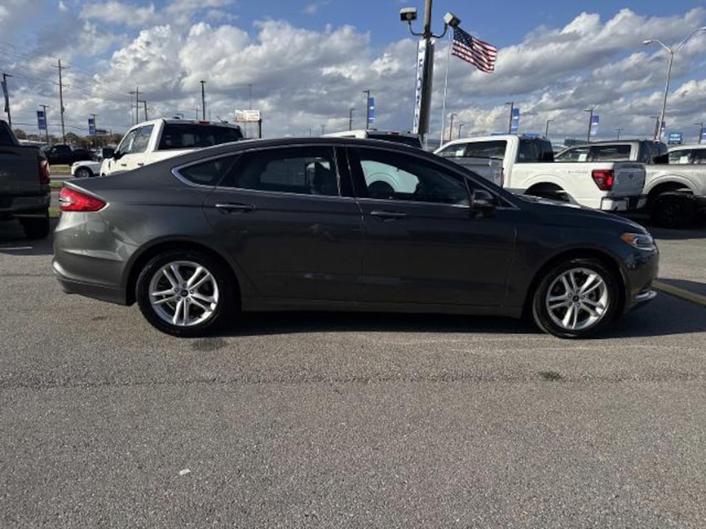 6-Speed Automatic. Gray 2018 Ford Fusion SE FWD 6-Speed Automatic 1.5L EcoBoost<br><br>Recent Arrival! 23/34 City/Highway MPG<br><br>Awards:<br> * 2018 KBB.com 10 Best Sedans Under $25000 * 2018 KBB.com 10 Most Awarded Brands * 2018 KBB.com Brand Image Awards<br><br>Robinson Brothers Ford Lincoln specializes in one owner lease returns and trade in vehicles - not cars from rental companies! We believe it is a much better value for your money to purchase a one owner lease return or a customer trade-in as opposed to rental units that have not been taken care of! We offer a complimentary vehicle history report on all of our vehicles! Buy with confidence! Equipment Group 202A Fusion SE Luxury Package (Auto-Dimming Rear-View Mirror Heated Leather Front Bucket Seats Intelligent Access w/Remote Start System Leather-Wrapped Steering Wheel LED Headlamps Upgraded Sideview Mirrors w/Heat and Warm Interior Accents) 6-Speed Automatic 4-Wheel Disc Brakes 6 Speakers ABS brakes Air Conditioning Alloy wheels AM/FM radio: SiriusXM Auto Stop-Start Technology Brake assist Bumpers: body-color CD player Cloth Front Bucket Seats Compass Delay-off headlights Driver door bin Driver vanity mirror Dual front impact airbags Dual front side impact airbags Electronic Stability Control Emergency communication system: 911 Assist Exterior Parking Camera Rear Four wheel independent suspension Front anti-roll bar Front Bucket Seats Front Center Armrest Front reading lights Fully automatic headlights Illuminated entry Knee airbag Low tire pressure warning Occupant sensing airbag Outside temperature display Overhead airbag Overhead console Paddle Shifters Panic alarm Passenger door bin Passenger vanity mirror Power door mirrors Power driver seat Power passenger seat Power steering Power windows Radio data system Radio: AM/FM Stereo/MP3/Single-CD Rear anti-roll bar Rear reading lights Rear seat center armrest Rear window defroster Remote keyless entry Security system SiriusXM Radio Speed control Speed-sensing steering Speed-Sensitive Wipers Split folding rear seat Steering wheel mounted audio controls SYNC Communications & Entertainment System Tachometer Telescoping steering wheel Tilt steering wheel Traction control Trip computer Variably intermittent wipers and Wheels: 17' Sparkle Silver Painted Aluminum.