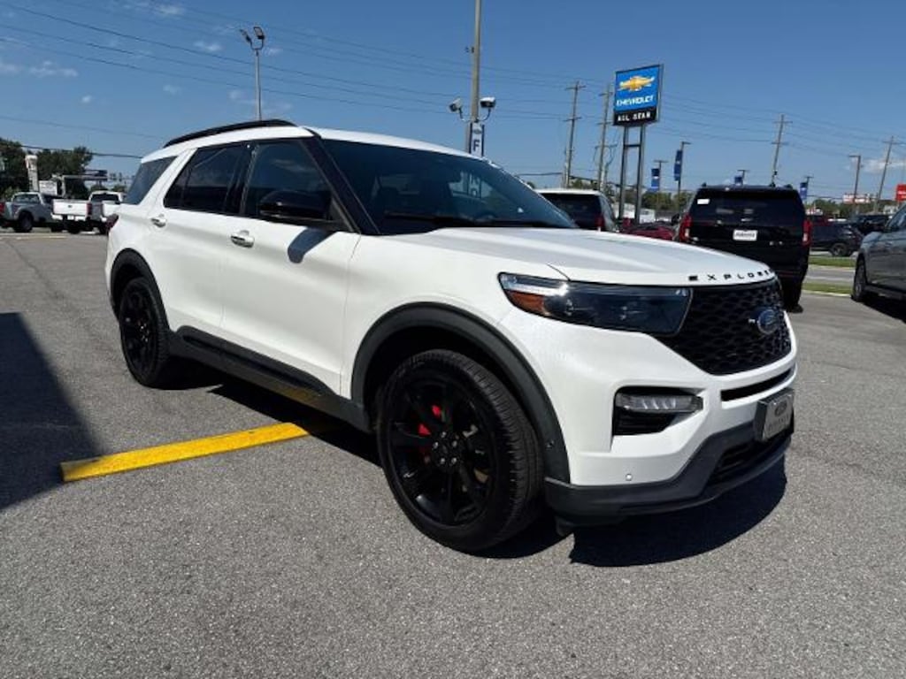 Clean Vehicle History Report, One Owner, Backup Camera, Bluetooth, Sunroof/Moonroof, Leather Seats, 4WD, Navigation System. White 2021 Ford Explorer ST 4WD 10-Speed Automatic 3.0L EcoBoost V6
