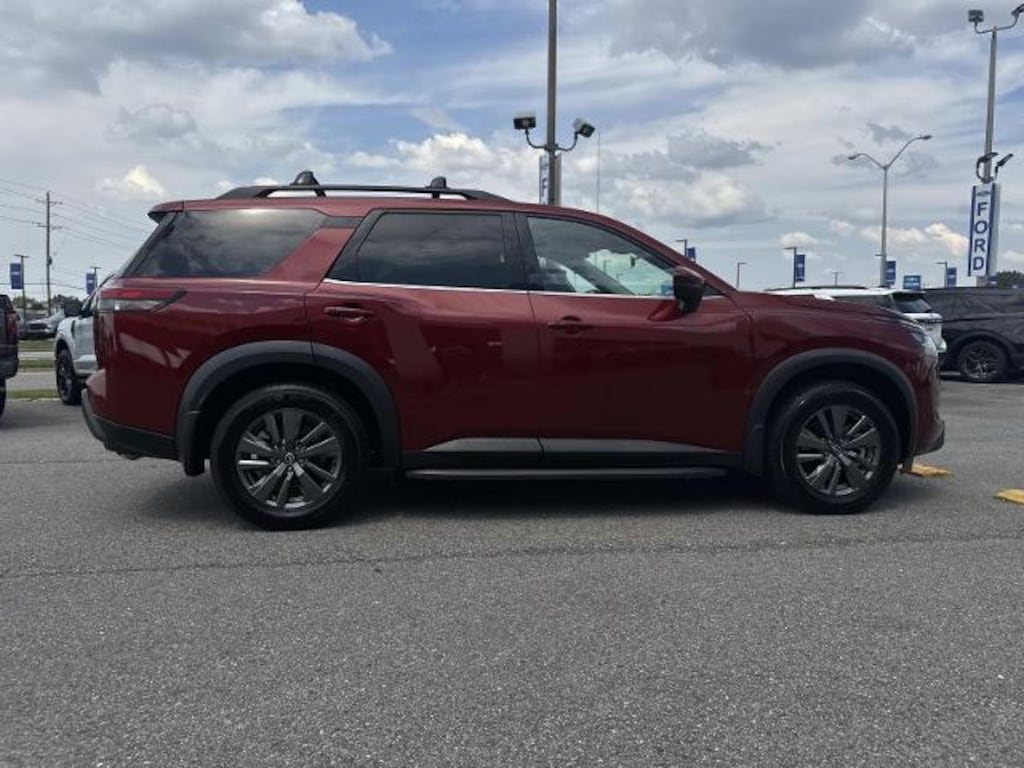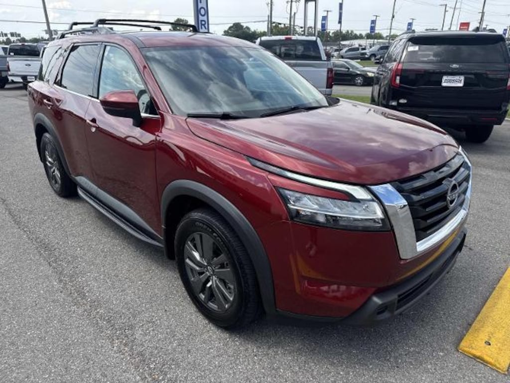 Scarlet Ember Tintcoat 2022 Nissan Pathfinder SV FWD 9-Speed Automatic V6<br><br>Recent Arrival! 21/26 City/Highway MPG<br><br><br>Robinson Brothers Ford Lincoln specializes in one owner lease returns and trade in vehicles - not cars from rental companies! We believe it is a much better value for your money to purchase a one owner lease return or a customer trade-in as opposed to rental units that have not been taken care of! We offer a complimentary vehicle history report on all of our vehicles! Buy with confidence! 18' Painted Alloy Wheels 3rd row seats: bench 4-Wheel Disc Brakes 6 Speakers ABS brakes Air Conditioning Alloy wheels AM/FM radio: SiriusXM Auto High-beam Headlights Automatic temperature control Axle Ratio: TBD Bench Seat Carpeted Floor Mats (Set of 4) Black Splash Guards (Set of 4) Brake assist Bumpers: body-color Cloth Seating Surfaces Cross Bars Delay-off headlights Driver door bin Driver vanity mirror Dual front impact airbags Dual front side impact airbags Electronic Stability Control Emergency communication system: NissanConnect Services Four wheel independent suspension Front anti-roll bar Front Bucket Seats Front Center Armrest Front dual zone A/C Front reading lights Fully automatic headlights Heated door mirrors Heated Front Bucket Seats Heated front seats Illuminated entry Knee airbag Leather steering wheel Low tire pressure warning NissanConnect featuring Apple CarPlay and Android Auto Occupant sensing airbag Outside temperature display Overhead airbag Overhead console Panic alarm Passenger door bin Passenger vanity mirror Power door mirrors Power driver seat Power steering Power windows Radio data system Radio: AM/FM Audio System w/NissanConnect Rear air conditioning Rear anti-roll bar Rear Parking Sensors Rear reading lights Rear seat center armrest Rear side impact airbag Rear window defroster Rear window wiper Reclining 3rd row seat Remote keyless entry Security system Speed control Speed-sensing steering Split folding rear seat Spoiler Steering wheel mounted audio controls Tachometer Telescoping steering wheel Tilt steering wheel Traction control Trip computer Turn signal indicator mirrors and Variably intermittent wipers.
