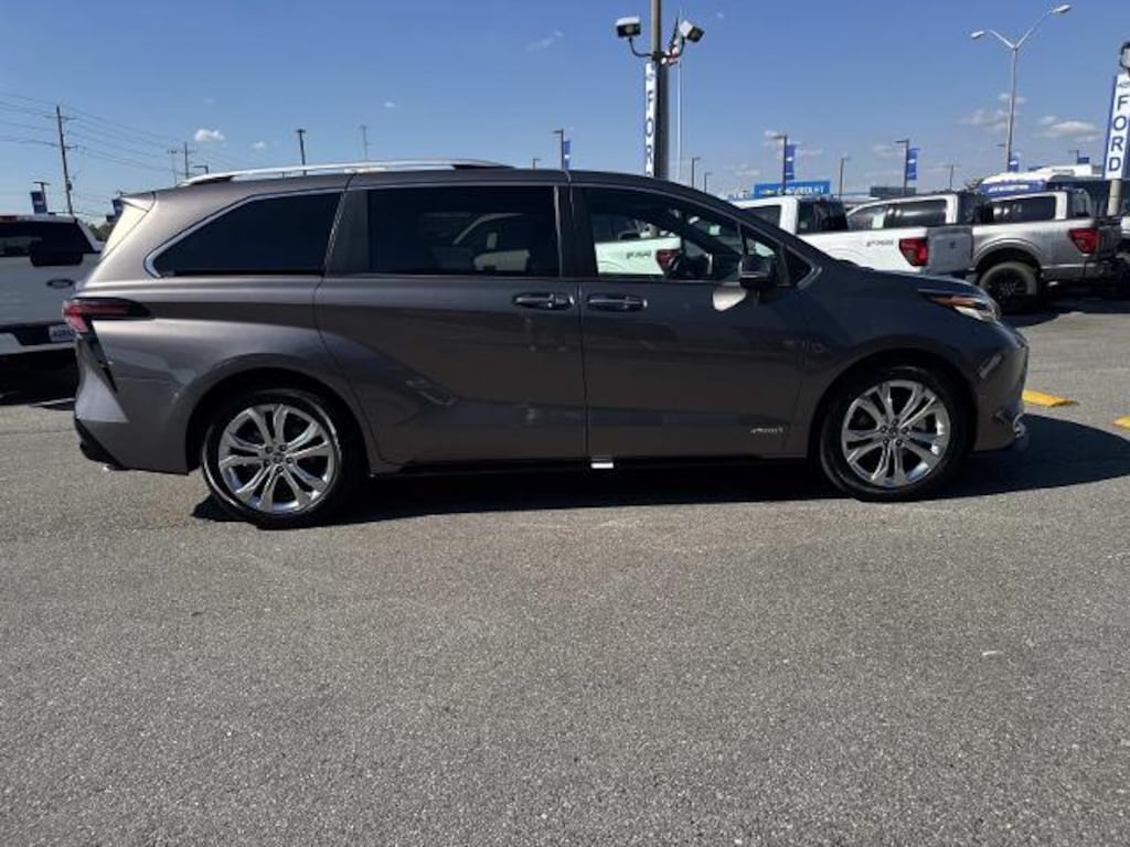ABS brakes, Active Cruise Control, Alloy wheels, Compass, Electronic Stability Control, Front dual zone A/C, Heated door mirrors, Heated front seats, Heated rear seats, Illuminated entry, Leather Seat Material, Low tire pressure warning, Navigation System, Power Liftgate, Power moonroof, Rear dual zone A/C, Remote keyless entry, Traction control. Gray 2021 Toyota Sienna Platinum 7 Passenger FWD CVT 2.5L I4