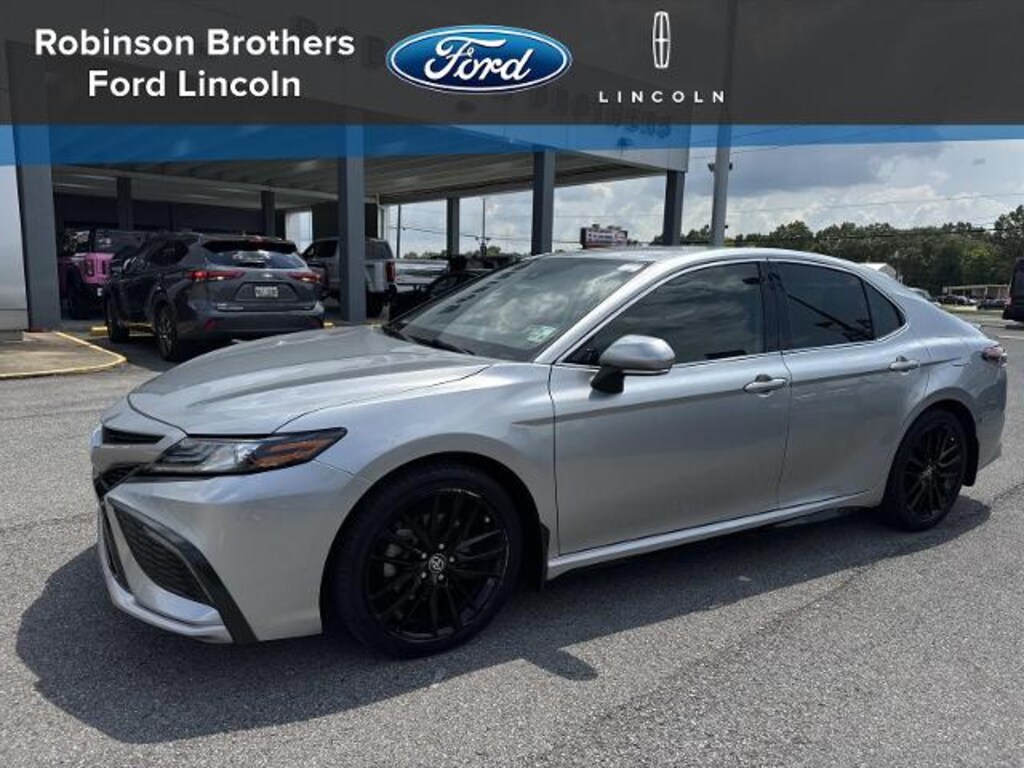 Black Leather. Silver 2022 Toyota Camry XSE FWD 8-Speed Automatic 2.5L I4 DOHC 16V<br><br>Recent Arrival! 27/38 City/Highway MPG<br><br><br>Robinson Brothers Ford Lincoln specializes in one owner lease returns and trade in vehicles - not cars from rental companies! We believe it is a much better value for your money to purchase a one owner lease return or a customer trade-in as opposed to rental units that have not been taken care of! We offer a complimentary vehicle history report on all of our vehicles! Buy with confidence! Black Leather 4-Wheel Disc Brakes 6 Speakers ABS brakes Air Conditioning Alloy wheels AM/FM radio: SiriusXM Apple CarPlay/Android Auto Auto High-beam Headlights Auto-dimming Rear-View mirror Automatic temperature control Brake assist Bumpers: body-color Delay-off headlights Driver door bin Driver vanity mirror Dual front impact airbags Dual front side impact airbags Electronic Stability Control Emergency communication system: Safety Connect with 1-year trial Exterior Parking Camera Rear Four wheel independent suspension Front anti-roll bar Front Bucket Seats Front Center Armrest Front dual zone A/C Front reading lights Fully automatic headlights Garage door transmitter: HomeLink Heated door mirrors Heated front seats Illuminated entry Knee airbag Low tire pressure warning Multi-Stage Heated Front Bucket Seats Occupant sensing airbag Outside temperature display Overhead airbag Overhead console Panic alarm Passenger door bin Passenger vanity mirror Perforated Leather Seat Trim Power door mirrors Power driver seat Power passenger seat Power steering Power windows Radio data system Radio: AM/FM/HD Audio Plus Rear anti-roll bar Rear reading lights Rear seat center armrest Rear side impact airbag Rear window defroster Remote keyless entry Security system Speed control Speed-sensing steering Split folding rear seat Spoiler Steering wheel mounted audio controls Tachometer Telescoping steering wheel Tilt steering wheel Traction control Trip computer Turn signal indicator mirrors Variably intermittent wipers and Wheels: 8.0J x 19' Black Machined-Finish Alloy.